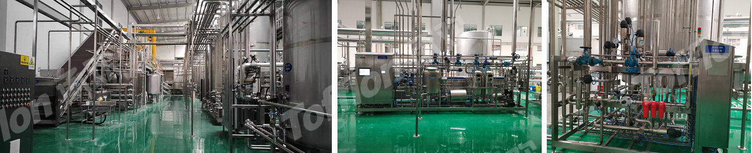 Adopt pipe-in-pine circulation structure, with steam, hot water and cold water as heat exchange medium, and can be used for continuous sterilization of materials with high solid content and high viscosity, and large particle content (≤ 70%), such as fruit and vegetable clear juice, puree, concentrated juice, fruit jam, honey, syrup, popping boba, pulp, fruit grain, etc.
