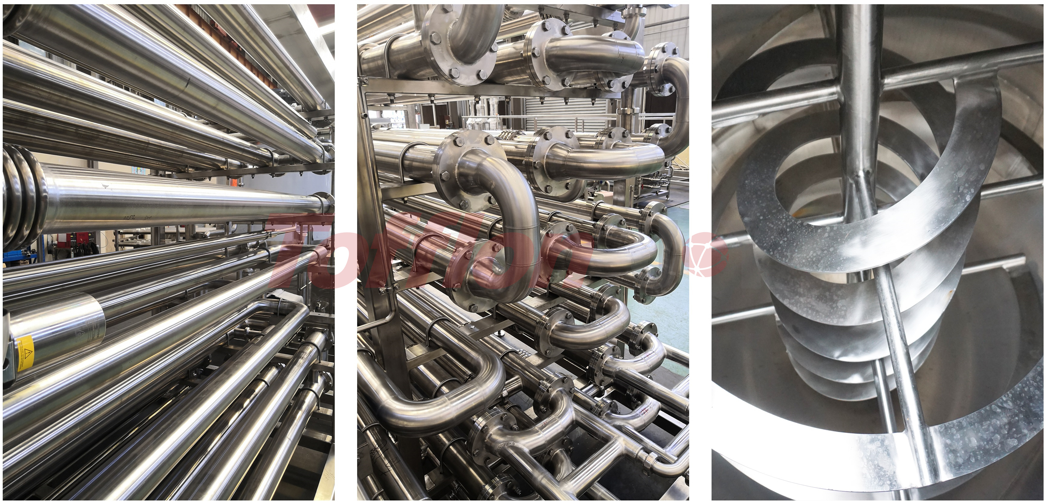 ? 所有換熱管均采用不銹鋼國(guó)標(biāo)無(wú)縫鋼管,耐壓測(cè)試時(shí)長(zhǎng)120分鐘,壓力≧20bar,所有高壓無(wú)菌換向閥門均配有高溫蒸汽屏障,有效保障產(chǎn)品安全;
