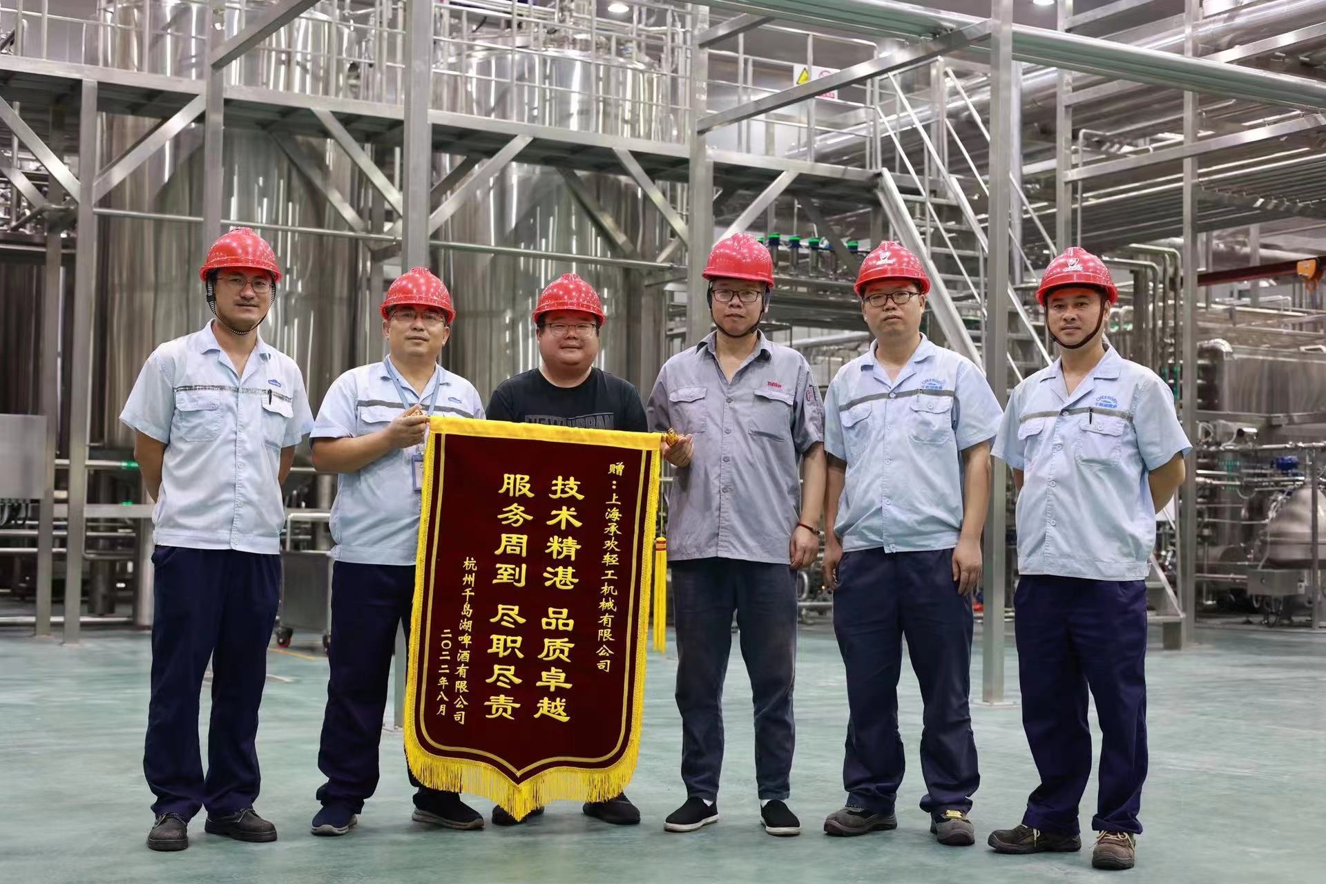 近期最高氣溫更是高達(dá)40℃,驕陽(yáng)似火,也擋不住東富龍承歡工程項(xiàng)目安裝調(diào)試的熱情,工程部在做好防暑工作的前提下,把握節(jié)點(diǎn),全力加快施工進(jìn)度,精湛的技術(shù)和卓越的品質(zhì)獲得杭州千島湖啤酒有限公司的極大的肯定和認(rèn)可,并把滿(mǎn)意印在了錦旗,贈(zèng)送給了現(xiàn)場(chǎng)工程部。