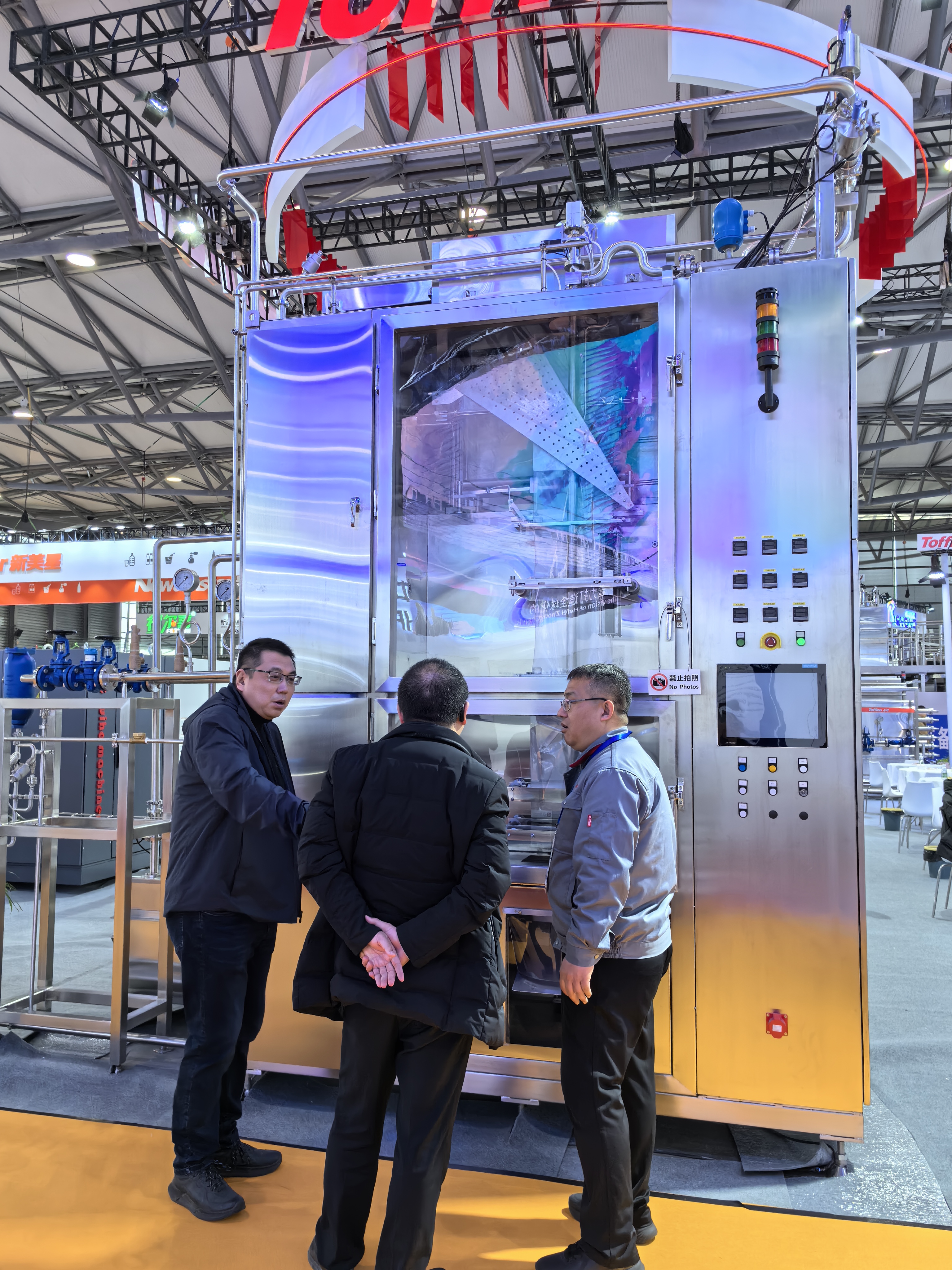 此外,首次研發(fā)展示的PE大袋無(wú)菌灌裝機(jī),也是本次展會(huì)的一大亮點(diǎn),該設(shè)備以其獨(dú)特的設(shè)計(jì)和強(qiáng)大的功能,可輕松實(shí)現(xiàn)3-10L多種容量的無(wú)菌灌裝,不僅提高了生產(chǎn)效率,還降低了成本,保證飲料的衛(wèi)生和安全,讓參觀者對(duì)東富龍食品工程在技術(shù)方面的創(chuàng)新和專業(yè)性贊不絕口。