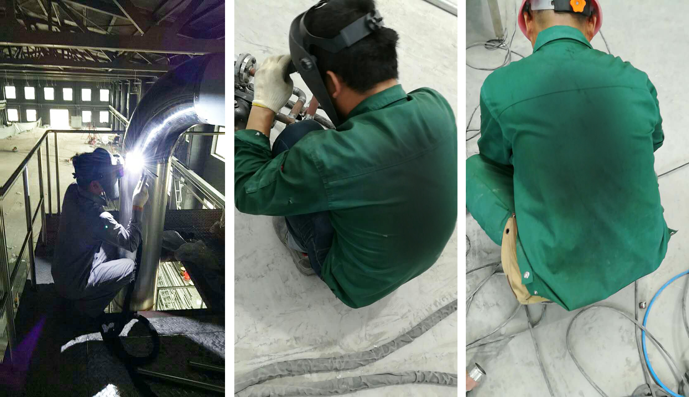 高溫下的不銹鋼表面就像是燒熱的烤板,碰在上面,就是強烈的燒灼感;在通風條件差的罐內(nèi)溫度明顯比罐外又要高出幾度。汗水浸濕了衣衫,手上的工作仍在繼續(xù),因為,按時交貨、如期完工,是我們的承諾。
