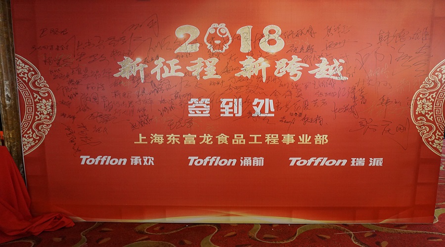 2018年1月13日,上海東富龍食品工程事業(yè)部的年會如期而至,年會邀請到了公司重要領導及嘉賓,一些合作伙伴,以及從工地相繼趕回來的員工,全體員工歡聚一堂,細數(shù)2017年一年中大家風雨同舟,奮力拼搏的點點滴滴,展望公司未來發(fā)展的蓬勃藍圖。各部門同事踴躍簽到,并合影留戀。