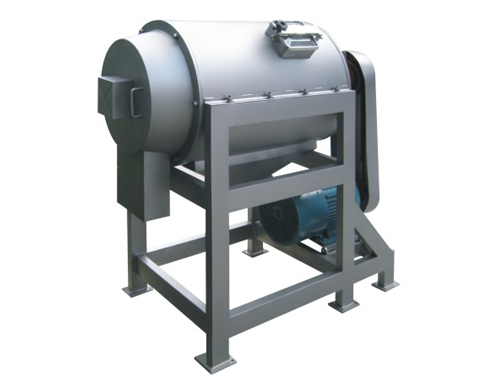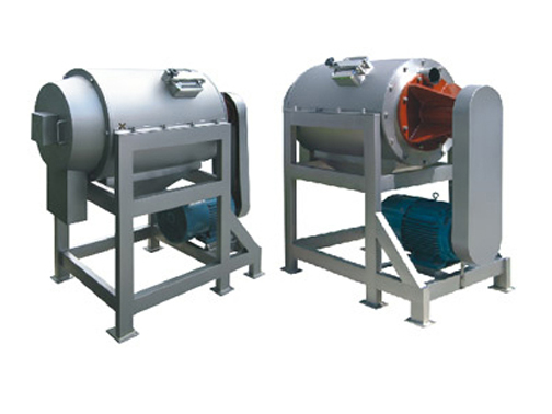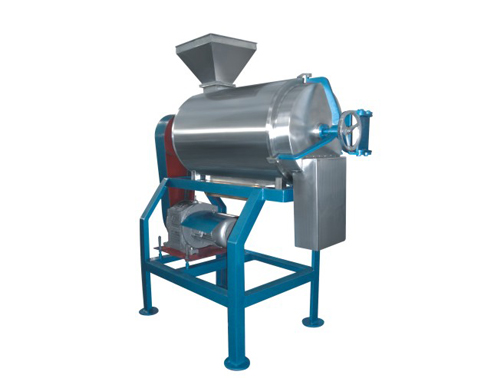 上道工序來的物料進入頭道物料桶內(nèi),主軸帶動葉輪高速旋轉(zhuǎn),物料被葉輪帶動與篩網(wǎng)摩擦擠壓,使得果肉,汁與皮、核、籽分離。肉和汁通過篩網(wǎng)上的小孔進入下道工序,皮和籽則向軸端推進經(jīng)過排渣口排出。