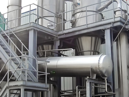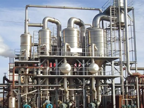 各效蒸發(fā)器、各效分離器、冷凝器、循環(huán)泵、效間泵、真空及排水系統(tǒng)、分汽缸、操作平臺、電器儀表控制柜及閥門、管路等系統(tǒng)組成。