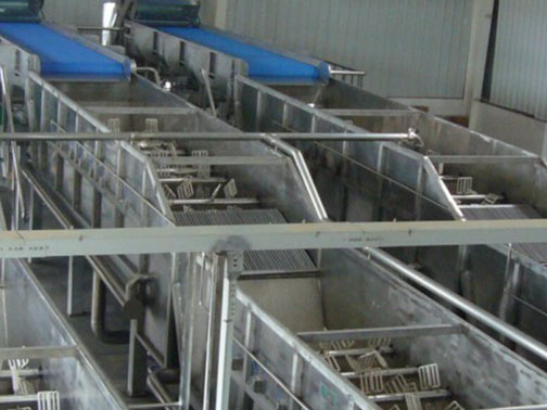 本設(shè)備采用撥板鼓泡沖浪的形式,廣泛用于果蔬原料的柔洗;主要由鼓泡水箱、撥板、支腿、手動(dòng)無級(jí)調(diào)速減速機(jī)、傳動(dòng)軸、漩渦氣泵等組成。