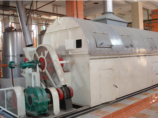 蒸汽首先加熱干燥管,物料進入殼體后,電機帶支干燥管轉(zhuǎn)動,同時將物料進行翻炒、推送,濕的蒸汽則由排氣風(fēng)機送到室外。
